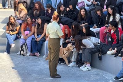 “Encuentro que la actividad salió súper bien. Me encantó participar, estaba muy entusiasmada porque soy muy fan de los Belga Malinois, así que quedé muy feliz de haber podido interactuar con uno de ellos”, comentó Diana, estudiante de primer año de Medicina Veterinaria.